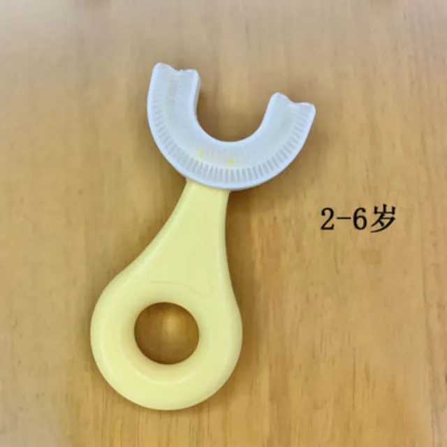 U자형 칫솔 2-12세 실리콘 칫솔신기전기동력 세정, 2-6세수동쇼트옐로개
