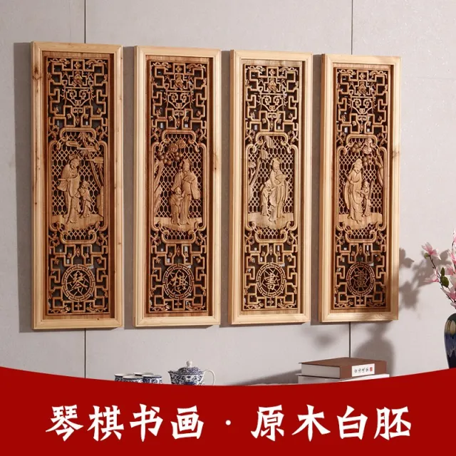 히가시요시 우드조각 장신구 중국식 기함 매란죽국화 네 개의 병풍 벽장식장식품 그림을 걸다, 금기서화 -- 오리지널원목 화이트 배
