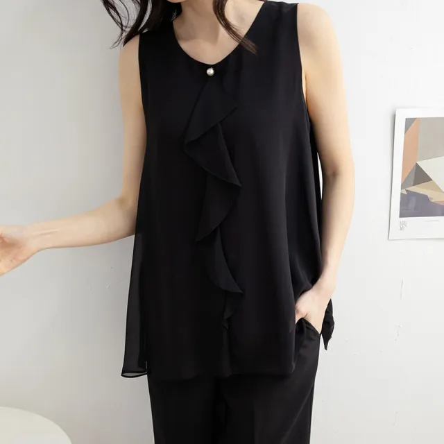 드리다 엄마옷 진주 프릴 쉬폰 나시 민소매 정장 플레어 빅사이즈 블라우스 40-50대 중년 마담 하객룩