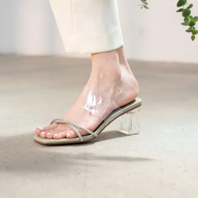 슈즈 장인 여왕 크리스탈 따르다 투명샌들 청키 사각코 샌들슬리퍼 있음 하이힐 여름