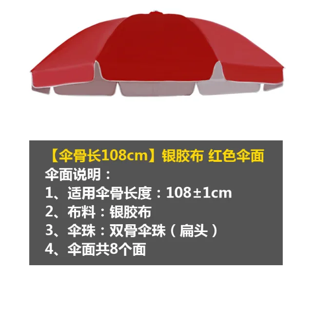 파라솔 라지 야외 노점 양산 꼭대기천 두꺼운 은고무 천방지 자외선 우산, T03-2.2미터 은고무 천 우산 빨간색 우산살 직사각
