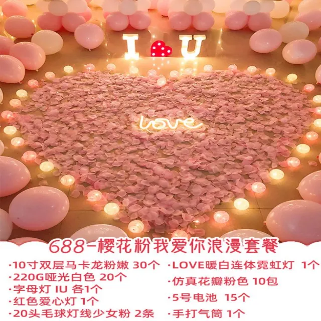 프로포즈 배치 홈실 침실 안 독창적 깜짝 놀라다 로맨스 장면 고백 소품 장식, 배터리, 688 -벚꽃 핑크 사랑해 로맨틱