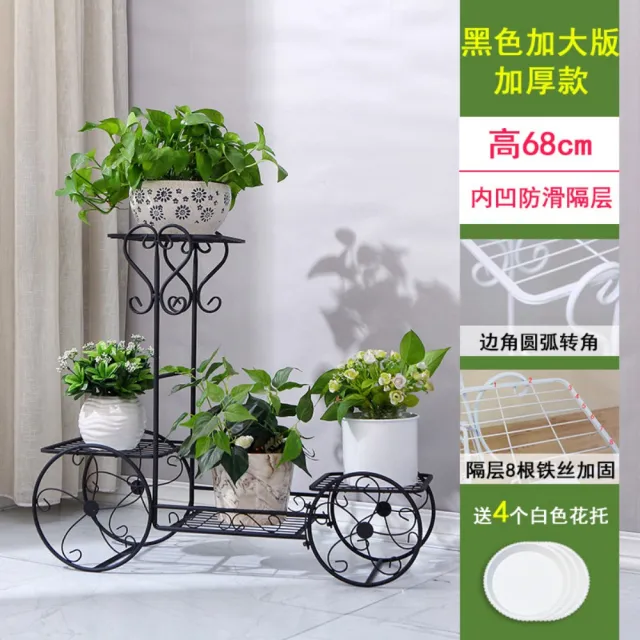 꽃꽂이 선반 발코니 가정용 장식 꽃다층 철제 유럽식 원목 철물 선반, 블랙 오버사이즈에 굵은 두께로 꽃받침 4개
