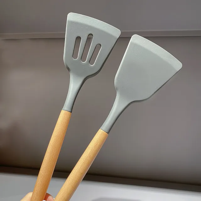 키친윙 코팅팬 전용 느티나무 손잡이 소프트 실리콘 볶기 빠뜨리다 다치지 않다 냄비 지지다 키트, 느티나무 나무 손잡이 실리콘삽 (2