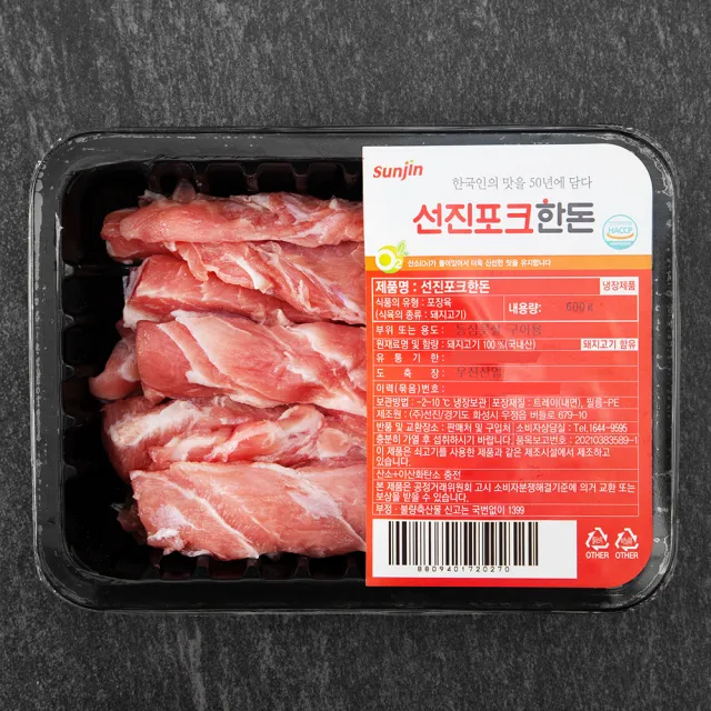 선진포크한돈 등심 꽃살 구이용 (냉장), 600g, 1개