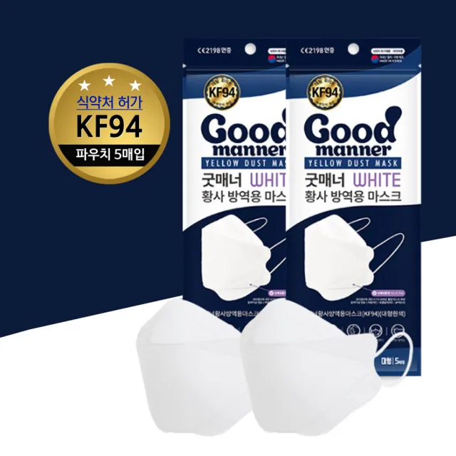 굿매너 황사 방역용 마스크 대형 KF94 화이트, 5매입, 100개 구매