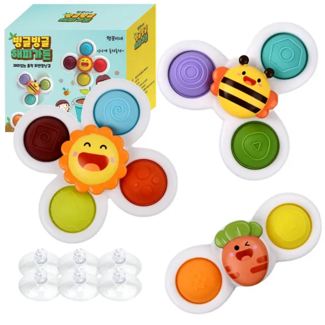 [행운이네] 빙글빙글해피가든 흡착식 회전장난감 3개 세트 목욕놀이 완구 꿀벌 당근 햇님 회전스피너 구매