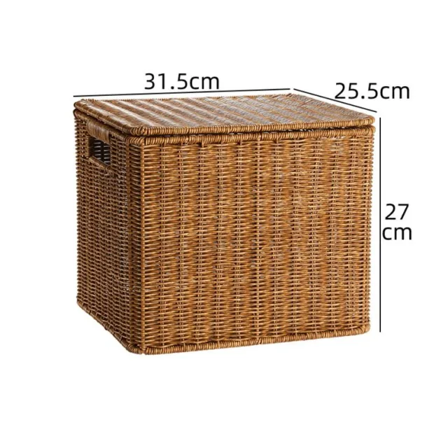 일본식 라탄 수납 바구니 상자 복고풍 옷 의류 보관함 대형 사각 박스 바스켓, 진한 커피 31.5X25.5X27cm