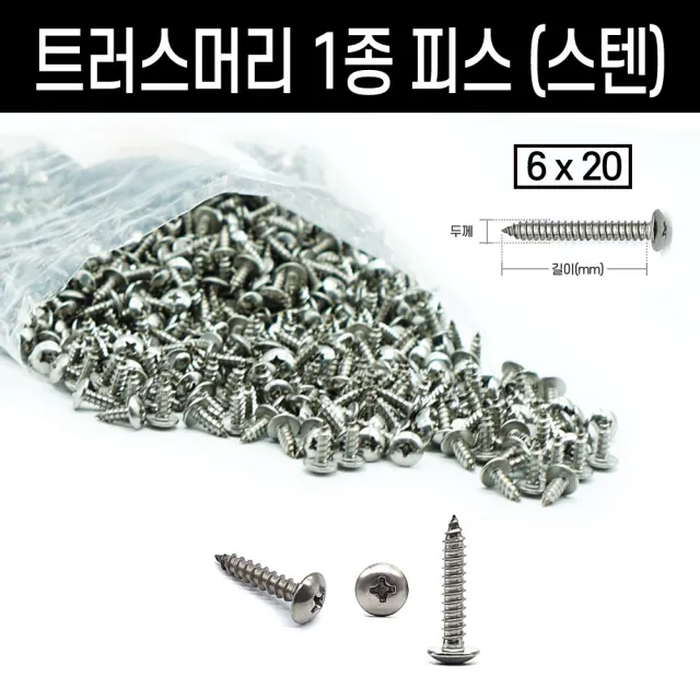 트러스머리 스텐 피스 나사 태핑 1종 우산머리피스, 트러스머리1종피스, 트러스머리1종피스(스텐) M6x20(300개) 구매