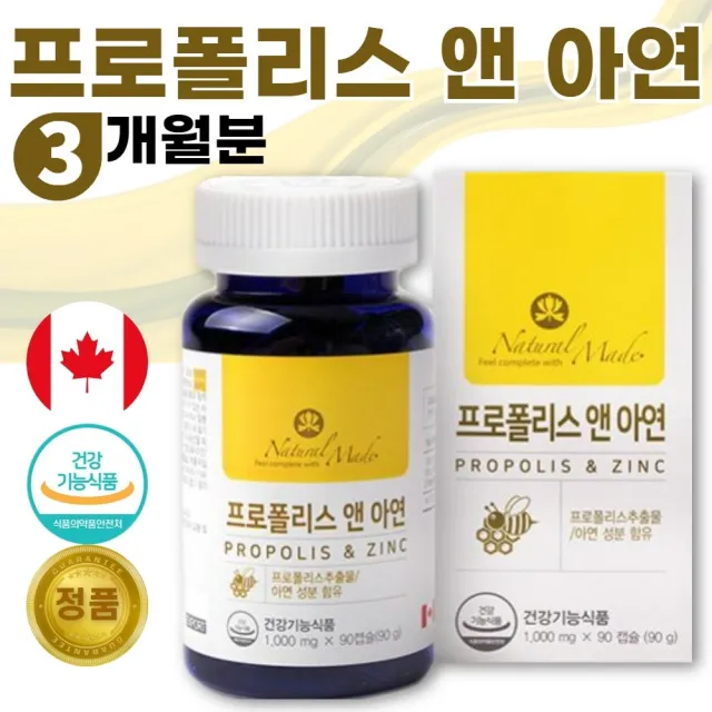 식약처 기능성 인증 캐나다 직수입 프로폴리스 90캡슐 약 3개월분 . 항산화 정상적인 면역 기능 세포분열 에 도움을 줄 수 있음 첨가물없는 순수 원료만을 담았습니다., 1통 90캡슐 3개월분