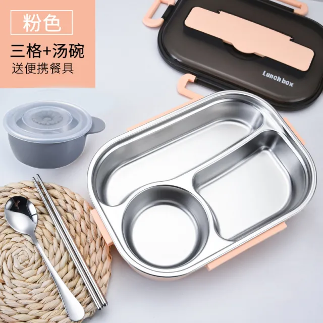 스테인리스강 깊어지다 도시락 학생 여식당 고등학교 남자 도시락 도시락 전자레인지 가열하다 직장인 가져가다 국그릇 일반도시락, 분홍색 3칸 1.5L 국그릇 배달 식기