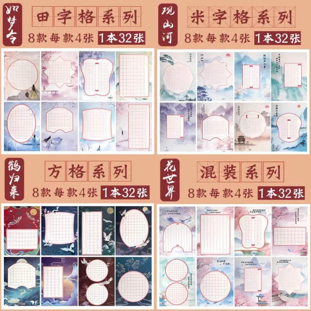 서식용지 하드 펜 서예 작품 종이 연습 전용지 쌀 글자의 격자 경기 차이나 옛일을 묘사하다 시전자격 체크 습자본 레벨 5, 4종 타입 혼재 32 타입 /도합 1 구매