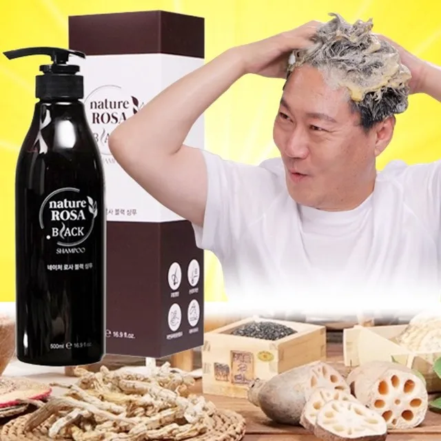 [TV홈쇼핑] 네이처로사 블랙샴푸 자연갈변 새치 염색 청춘 샴푸, (500ml+300ml) 구매