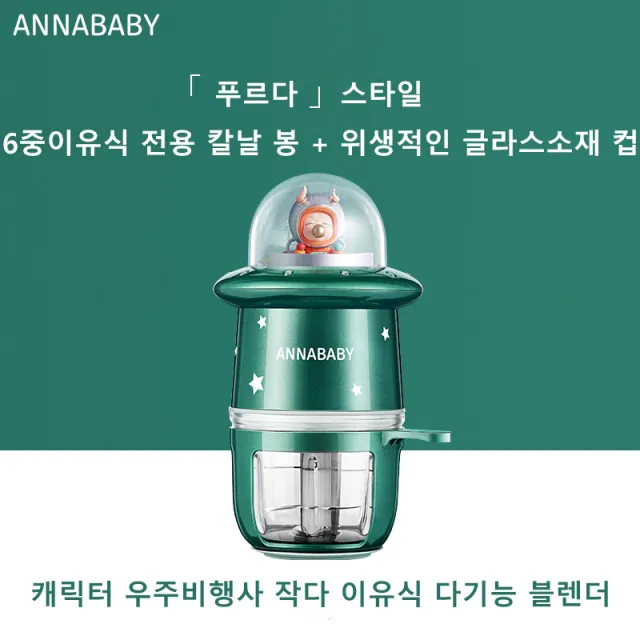 LIVBTS 캐릭터 우주비행사 작다 이유식 다기능 블렌더, 녹색