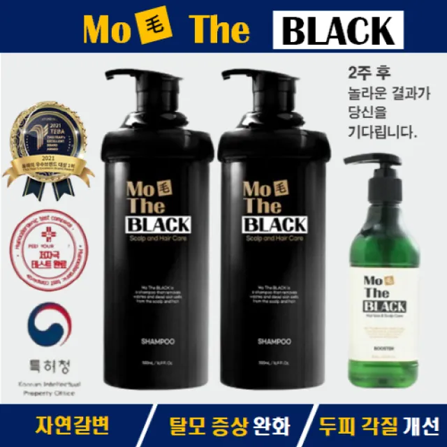 새치케어엔 부작용없는 자연갈변 염색샴푸 모더블랙 블랙샴푸 500ml 대용량 2개+탈모방지 부스터 구매