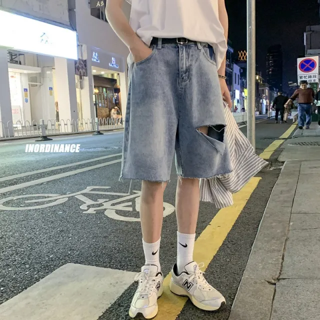 DFMEI 청항의 바람 여름 하이 스트리트 데미지 데님 반바지 남녀핏 미디엄 팬츠 캐주얼 와이드 5부 팬츠 구매
