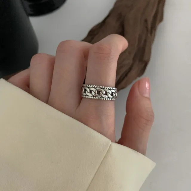 KORELAN 체인 조합 빈티지 실버 반지 여성 트렌드 왕훙 개성 차가운 바람 과장 소규모 힙합 반지