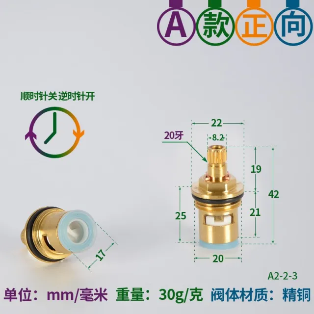 주방자바라수전 수도꼭지 코어 동전표 냉열 대분 수도꼮지 빨리 열다 도자기 앵글밸브 스위치 부품 완전무결 3823266015, A타입 바른 방향 (역행하다 순관하다