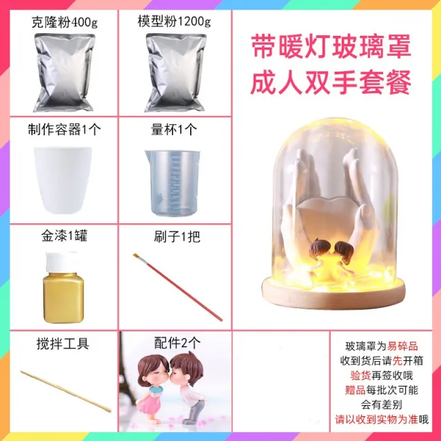 악수 사운드 핸드 마스크 클론 파우더 3d 핸드 모델 석고 diy 연인 버전 잉크 패드 아기 손 발자국을 만들기 위해, 양손 따뜻한 빛 패키지 파우더 페인트 브러시 버킷 컵 구매