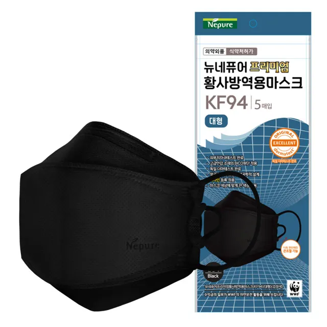 네퓨어 뉴네퓨어 프리미엄 황사방역마스크 KF94 대형 60매 [블랙]
