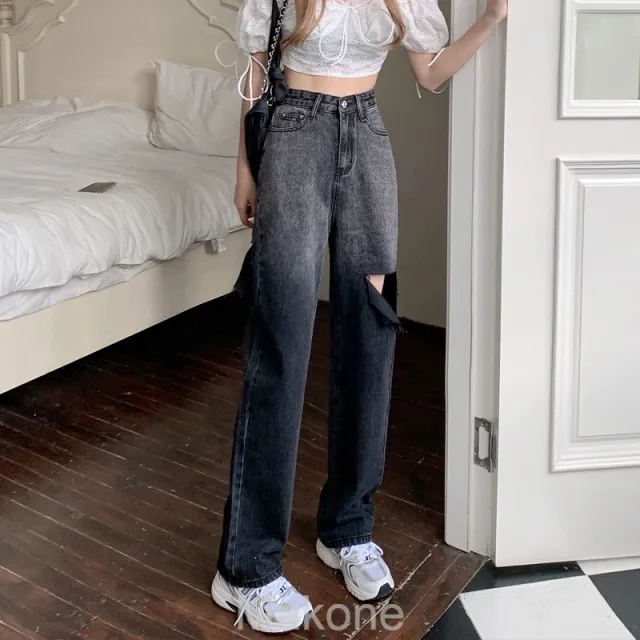 Makone여성용 청바지 슬림 청바지 큰 청바지[실검 8366] 찢어진 청바지 여자 하직통 헐렁 년 신상 왕홍 점차 넓어지다 다리 끌다 구매