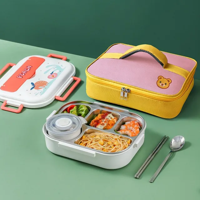 Karvin 스테인리스 보온도시락 분량도시락 학생아동 캐릭터 직장인 점심도시락 지참합니다, 네 칸, 수박