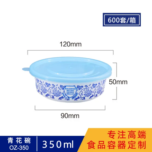 찬합반찬통 즉시 뛰어오르다 일회용 찬합통 테이크아웃 원형 덥개 포함 비닐 포장통 식료품 급 탕면 도시락통 4805983587, 350ml 청 꽃사발 (12Oz )-, 0x0mm 원형