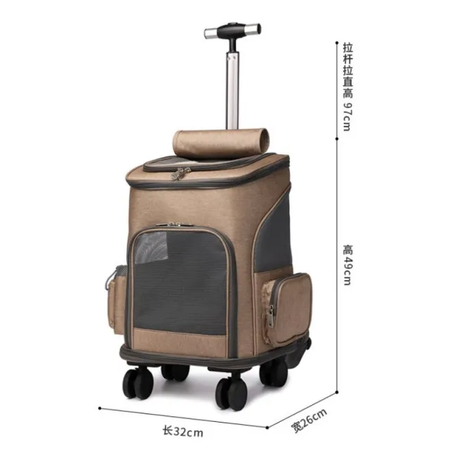 [SW] 고양이 캐리어 배낭 유모차 애완 동물 가방 360 학위 유니버설 바퀴 사이드 메쉬 개 트롤리 여행용 도구, Khaki