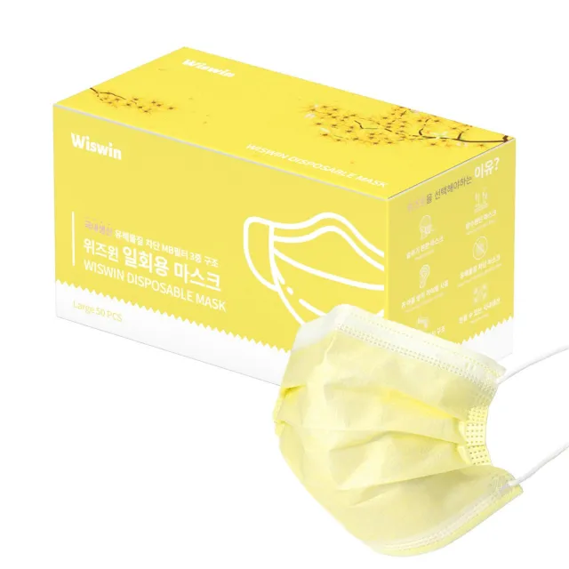 위즈윈 국내생산 3중구조 컬러 마스크 대형 50개입, 50개입, 1개, 옐로우 구매