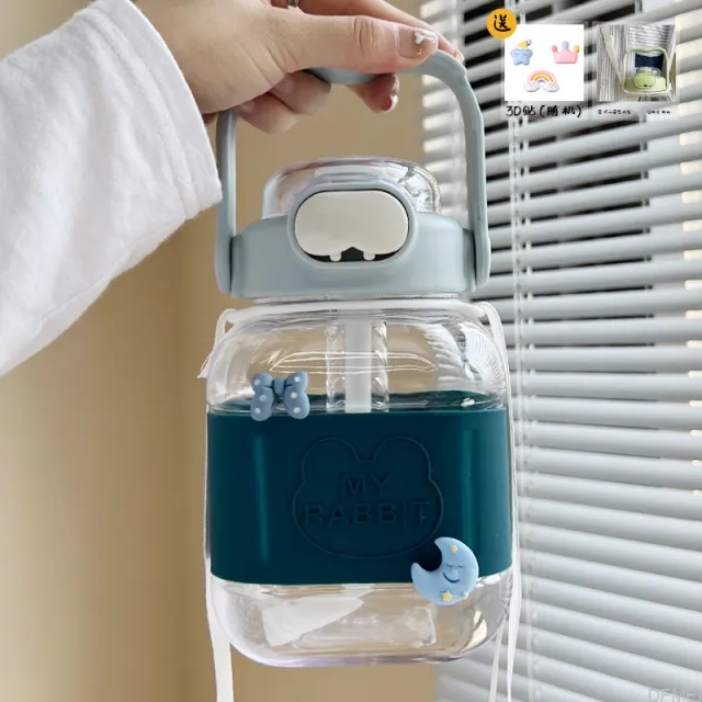 DFMEI.물컵 여름 큰배컵 보기 대용량 고온내성 빨대주전자 심플휴대용 컵을 예약하다., DFMEI블루+빅스트링+3D스티커(스타일랜덤) 구매