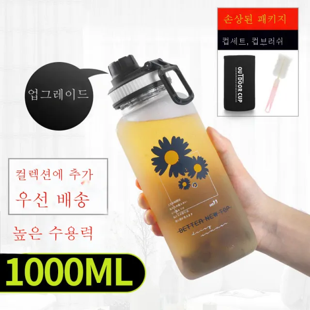 초대용량 유리컵 필터 내열 거품 찻잔 가정용 휴대용 남녀 여행 물병 스포츠 방폭컵, 코스모스1000ml콤비붓과차한칸을섞다. 구매