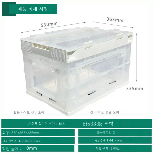 접이식 수납함 투명 뚜껑 달린 플라스틱함 양문열림 정리함 식품급 가정용 수납고무상자, 투명 중순 스타일의 도어_투명한 유백색 구매