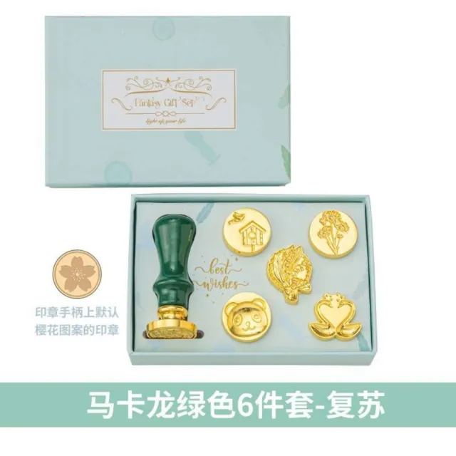 선물세트 도장 멜팅 씰링 왁스 6구 스탬프 기프트박스, 녹색머리6건인감도장-마카롱세트경기가회복되다.