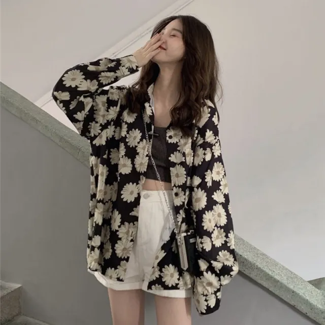 긴소매가디건 하프기장 레쉬 셔츠 여성 여름 얇다 와이드 루즈핏 데이지 코트 트렌드 1701050089