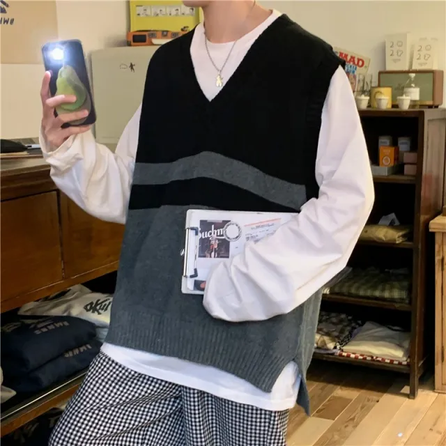 브이넥니트조끼 남자 트렌드 가을겨울 와이드 루즈핏 오버핏 학원 무드 민소매 빈티지스웨터디자인 런닝 3550200250