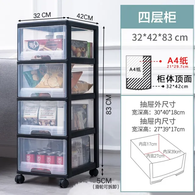 수납서랍장 JEKO 서랍형수납장 레이어드 응접실이 있다 장난감 이동식 진열장 비닐 가정용 2429246338, 32cm면와이드투명블랙사층면함조립손에넣다즉사용 구매