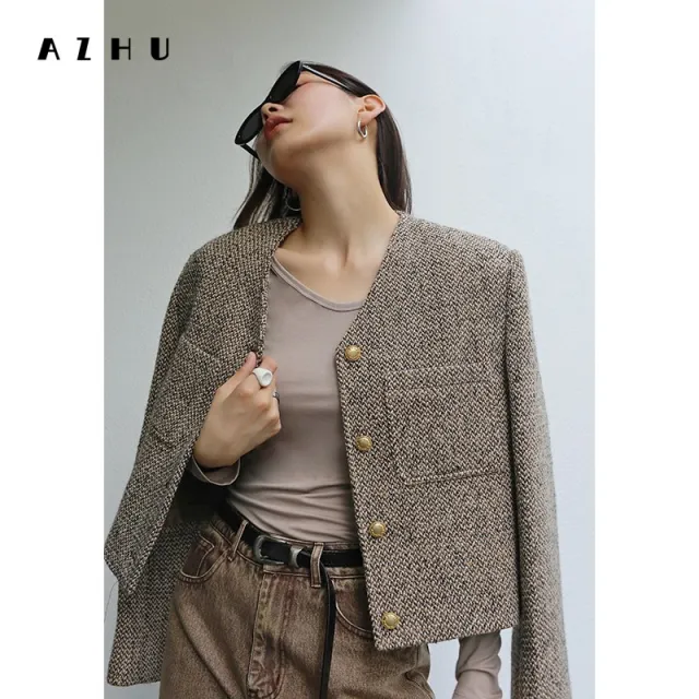 트위드자켓 아수 샤오샹풍 코트녀나른한 느낌에 울 50% 함유코튼 패딩에 도톰하고 고급스러운 트위드모직 오버 코트 구매